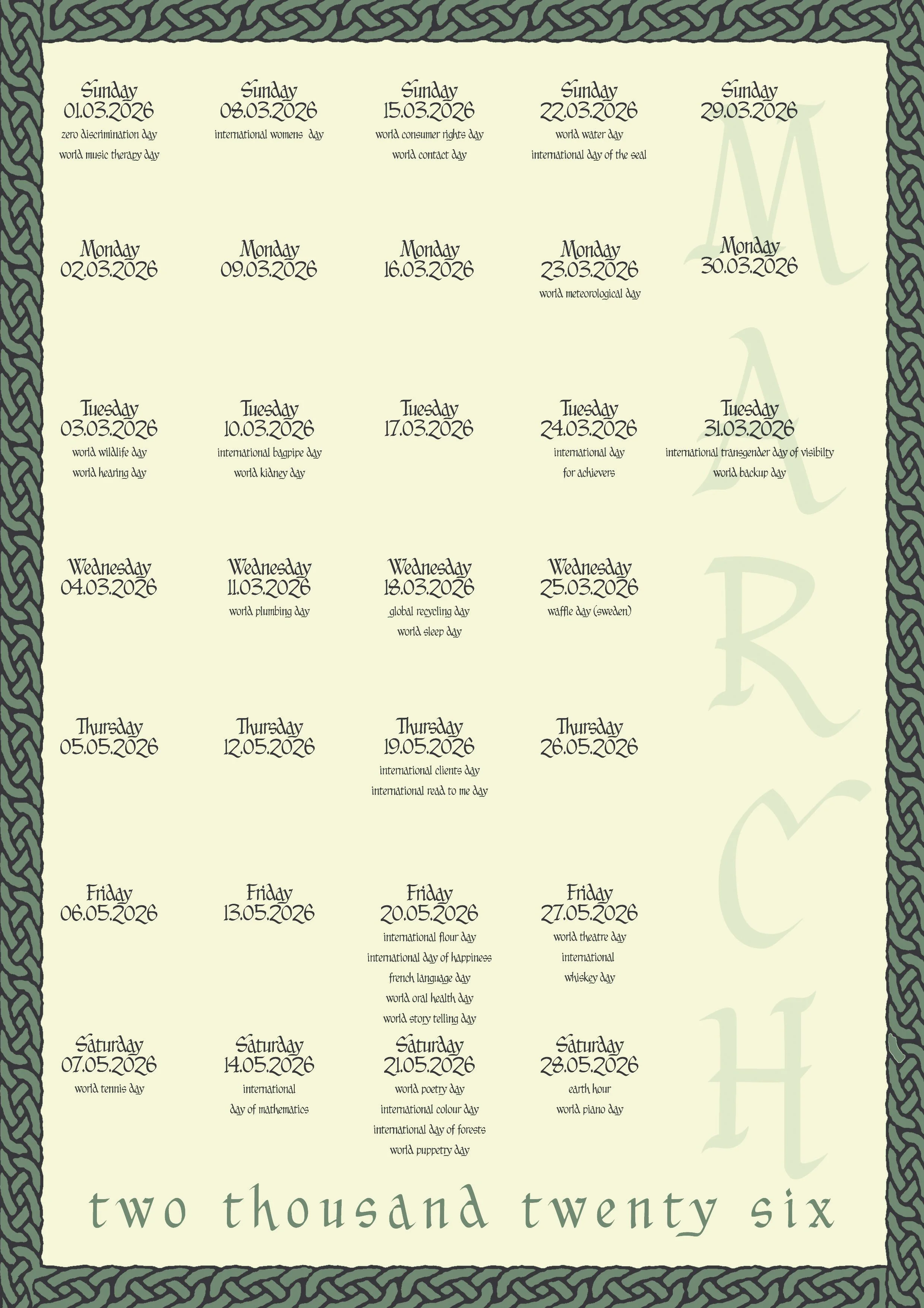 MARCH, 2026 CALENDAR